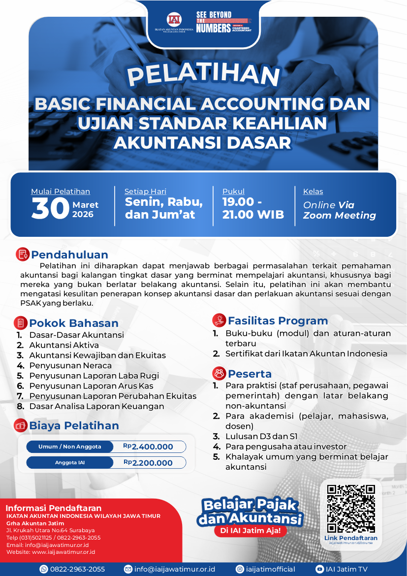 Pelatihan Basic Financial Accounting Senin, Rabu & Jumat dan Ujian Standar Keahlian Akuntansi Dasar
