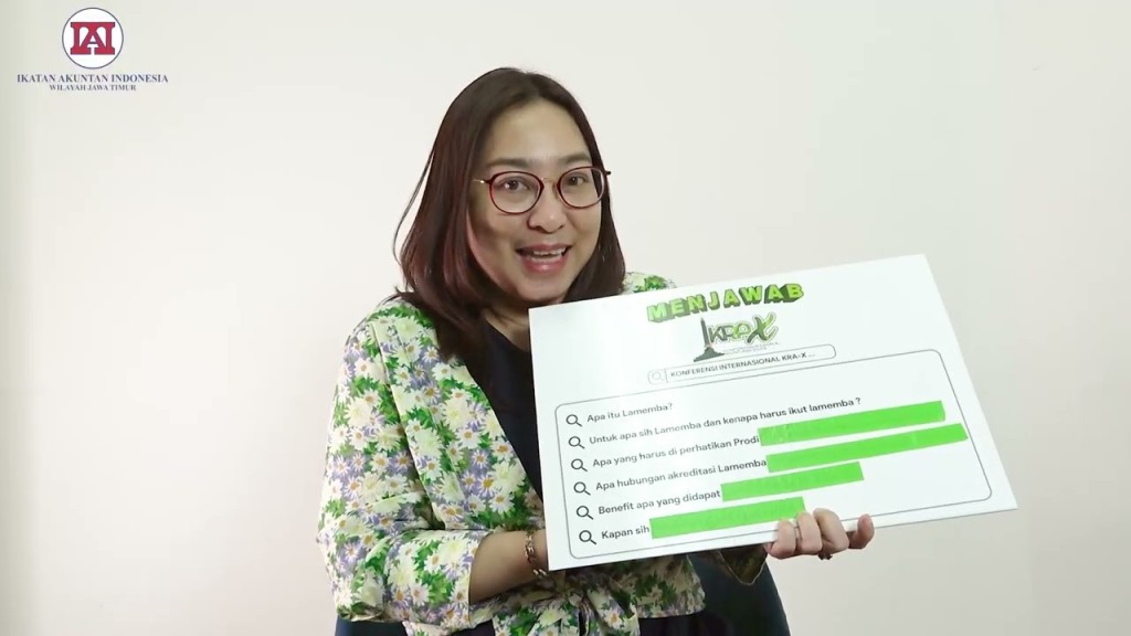 Judul: "LAMEMBA dan Konferensi Regional Akuntansi X: Membangun Kualitas Profesionalisme di Jawa Timur" Deskripsi: Selamat datang di saluran YouTube kami! Di saluran ini, kami akan membahas tentang pentingnya Lembaga Akreditasi Mandiri Ekonomi Manajemen Bisnis dan Akuntansi (LAMEMBA) dalam mengembangkan kualitas profesionalisme di bidang akuntansi, terutama dalam konteks Konferensi Regional Akuntansi X yang diadakan oleh Ikatan Akuntan Indonesia wilayah Jawa Timur. Mari kita eksplorasi bersama! LAMEMBA adalah sebuah lembaga akreditasi yang memiliki peran penting dalam memastikan standar keunggulan dan kualitas dalam praktik akuntansi. Lembaga ini berkomitmen untuk menjaga integritas, etika, dan profesionalisme dalam profesi akuntansi. Konferensi Regional Akuntansi X yang diadakan oleh Ikatan Akuntan Indonesia wilayah Jawa Timur merupakan sebuah acara yang bertujuan untuk meningkatkan pengetahuan, pertukaran informasi, dan kolaborasi antara para profesional akuntansi. Di saluran YouTube kami, kami akan mengulas mengenai bagaimana LAMEMBA dan Konferensi Regional Akuntansi X saling berhubungan dan saling mendukung dalam memajukan praktik akuntansi di Jawa Timur. Kami akan bertanya kepada para akademisi untuk menjawab apa hubungan dari lamemba dengan KRA X! Simak Video Berikut!!