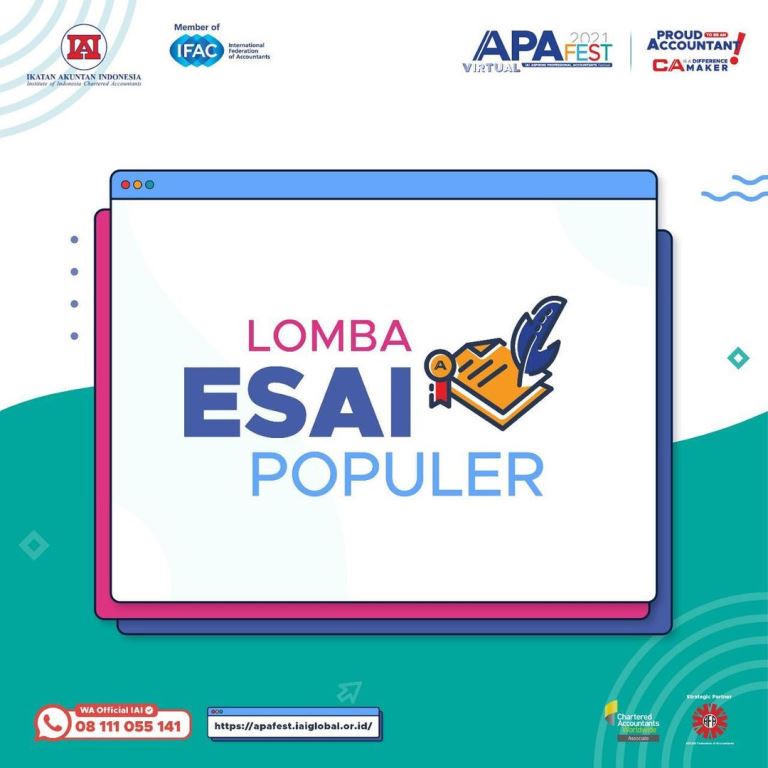 Lomba Esai Populer merupakan kompetisi penulisan esai populer yang ditujukan bagi mahasiswa Program Studi S1/DIV Akuntansi yang sudah menyelesaikan minimal semester 4 (empat) dengan minimal IPK 3.00. Total hadiah yang akan diperebutkan adalah senilai Rp 7 juta.